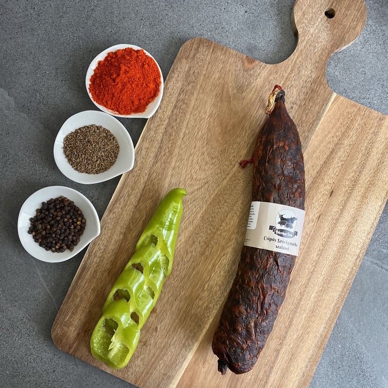 Élvezze a Csípős szürkemarha szalámi intenzív, füstös ízvilágát, és tegye különlegessé étkezéseit ezzel a hagyományos, prémium minőségű termékkel!